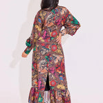 Classy and chic, The Parker Dress is making a statement with a mock neck line, balloon sleeves and a maxi skirt with ruffle trim.