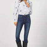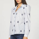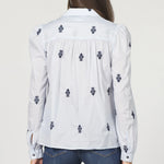 Nasrin long sleeve milky blue shirt featuring detailed embroidery for a touch of elegance.