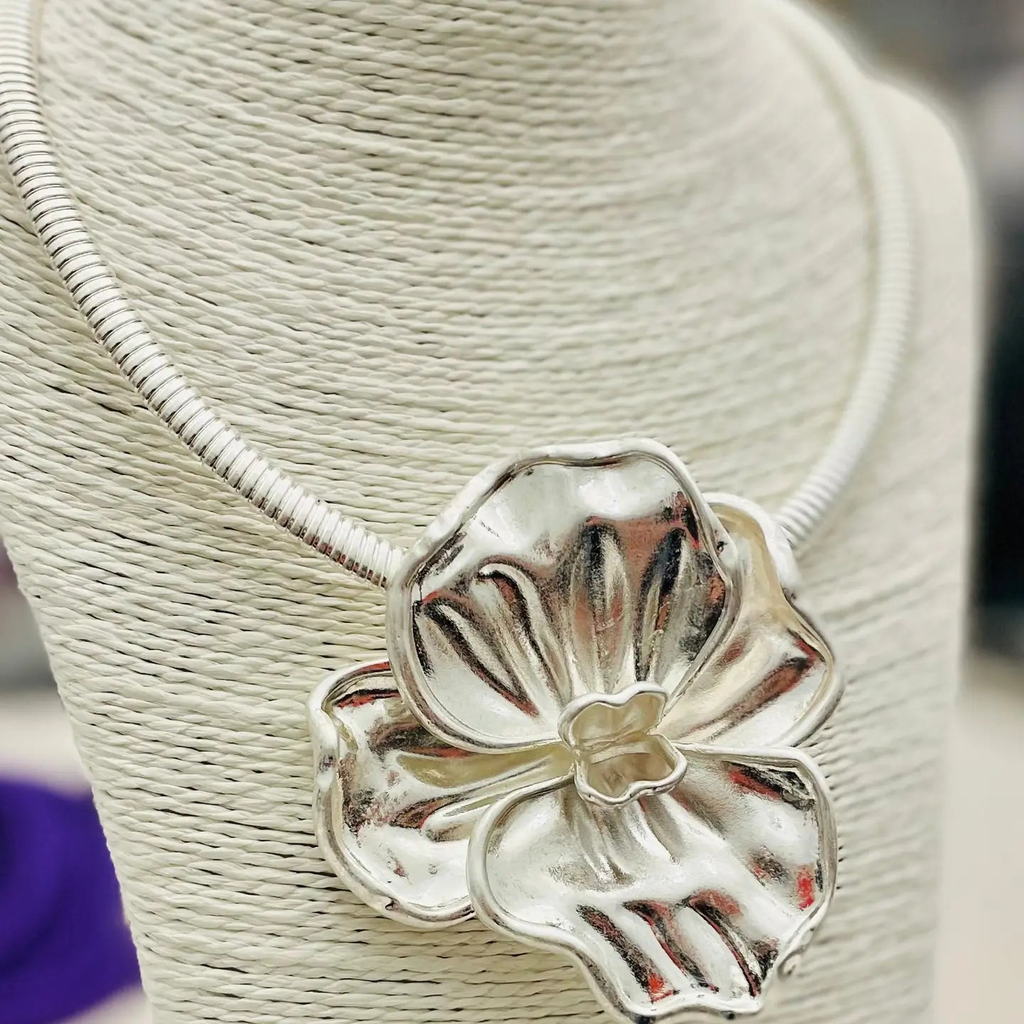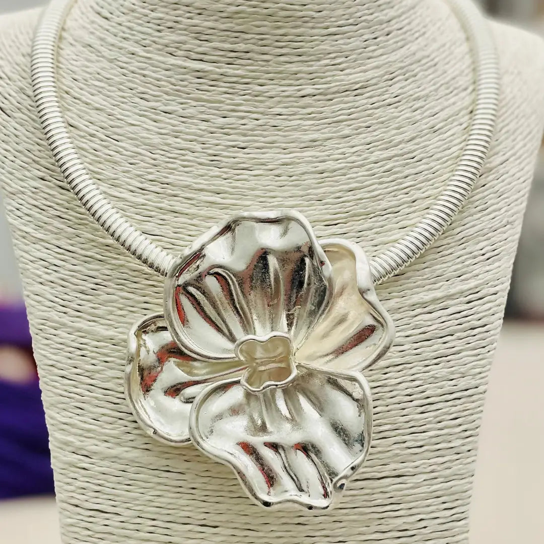 Pendant - Vintage Flower Choker (Matte Silver)