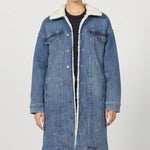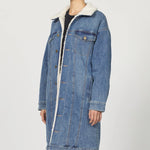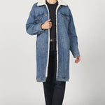 Crafted with stretch denim and sherpa, it blends sophistication with everyday wearability.