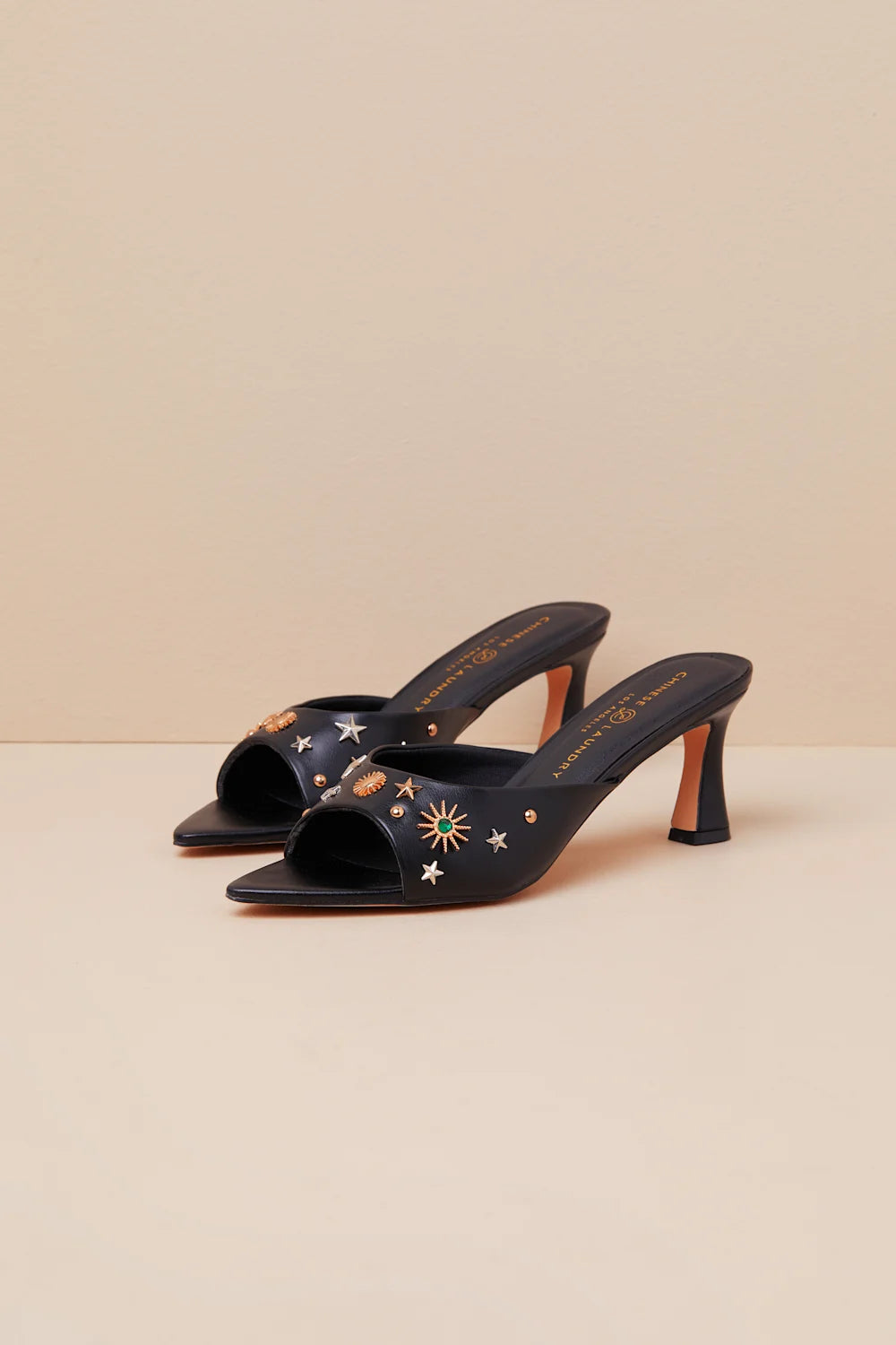Chinese Laundry Yarah Black Studded High Heel Slide Sandals