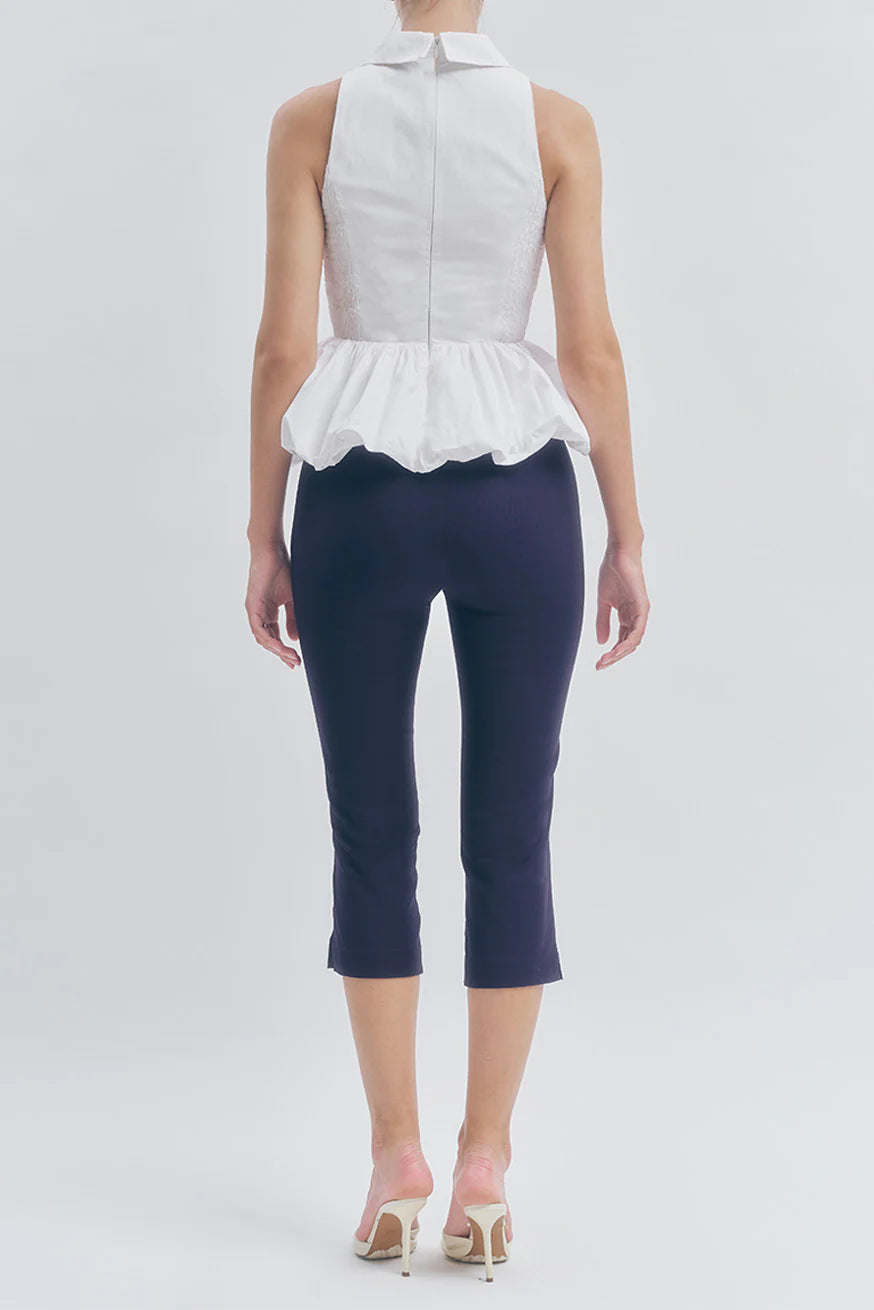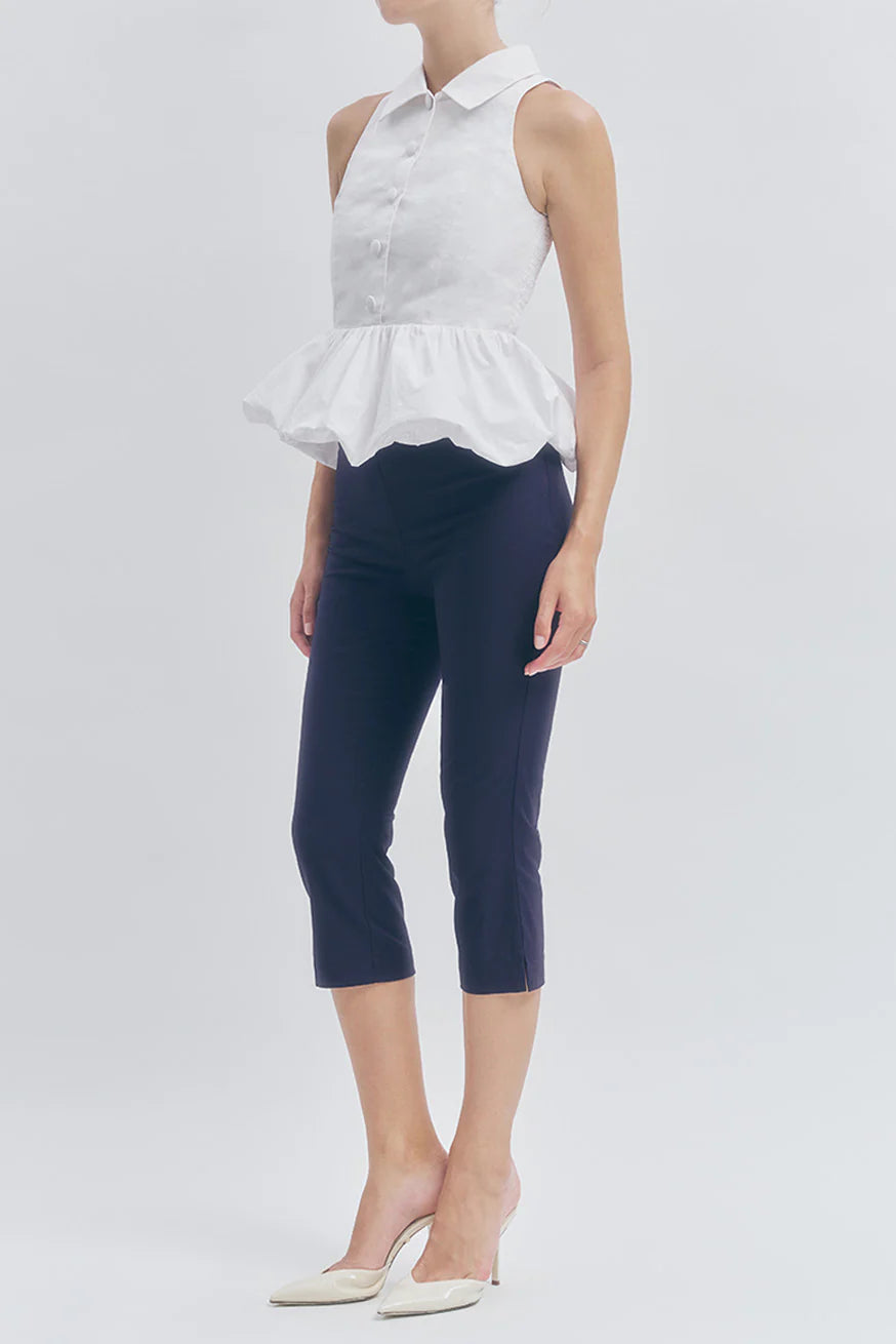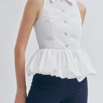COTTON COLLARED HALTER TOP W/ BUBBLE HEM