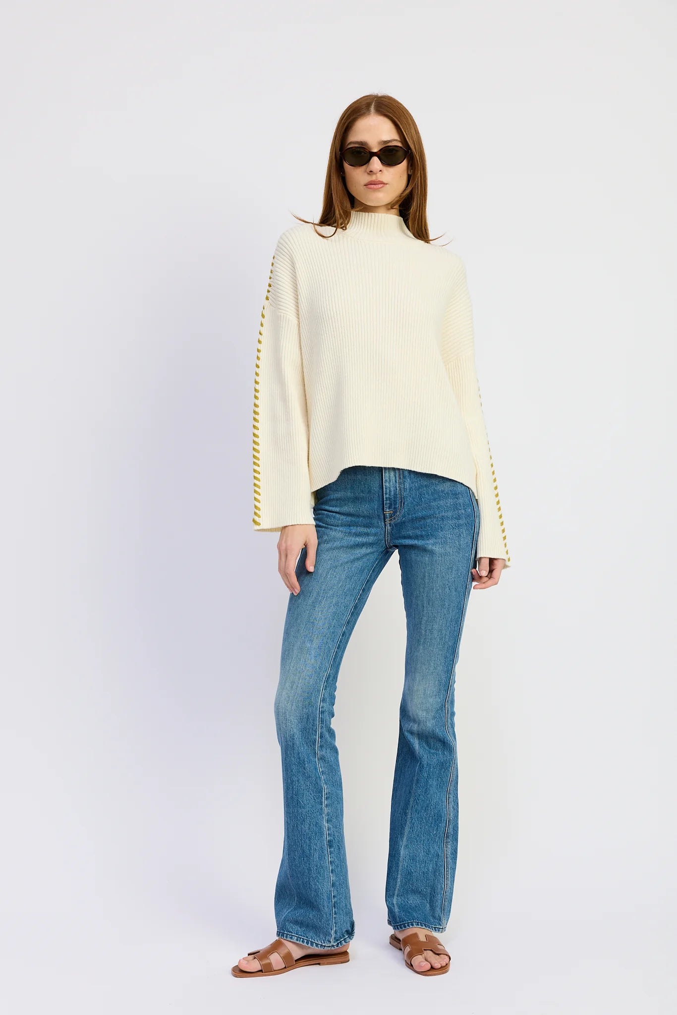 - Whip Stitch High Neck Bell Sleeve Boxy Sweater