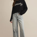 Your new go-to for casual days and cozy nights. This soft cotton crew features dropped shoulders, "spooky" embroidered lettering, and that perfectly worn-in feel you’ll reach for again and again.