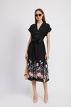 Border Placement Belted Utility Style Midi Dress With Cuffed Sleeves