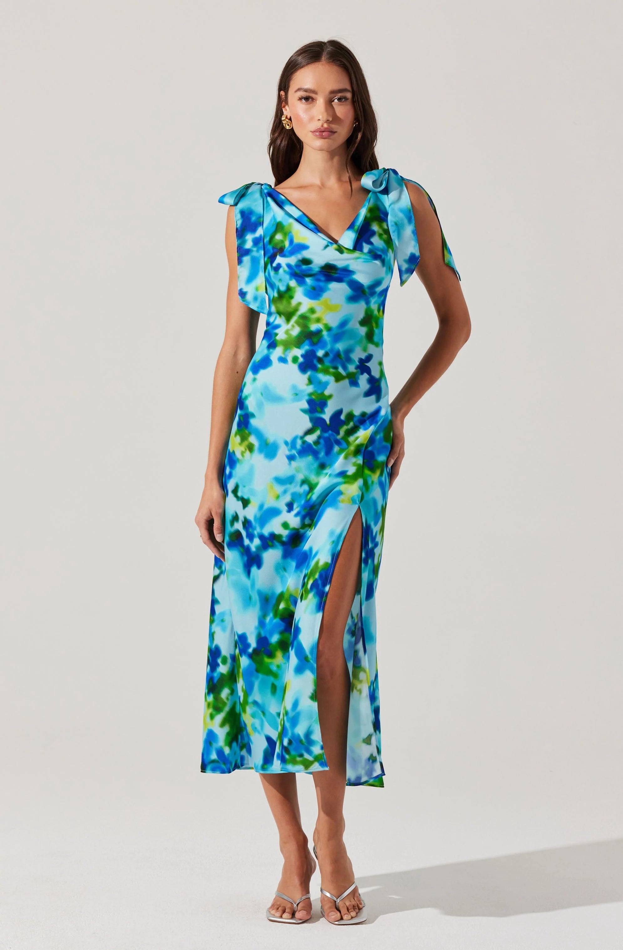 ASTR The Label Allexina Satin Cowl Neck Midi Dress