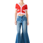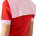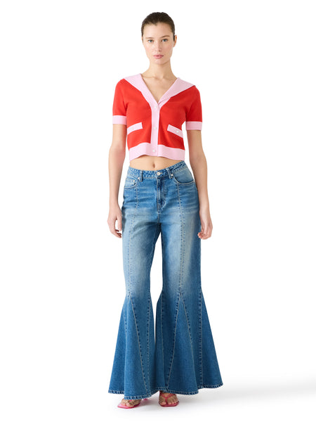This colorblocked, cropped cardigan is knit with a wide sailor collar, contrast rib trim and pearly dome buttons for a fresh interpretation of nautical looks.