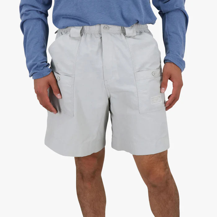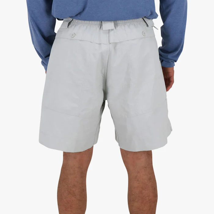 Details The "Original" AFTCO short. Introduced in 1989 and the choice of serious fishermen worldwide, the men's M01 fishing short is constructed of DuPont™ SUPPLEX® 3-ply nylon and has been treated with a stain resistant coating. It is an extremely strong and supple fabric. Fishermen and outdoorsmen will love the lightweight, super comfortable fit. It has 7 pockets (including a CORDURA® lined pliers pocket) so you will have a place for everything. It also features a double reinforced seat panel for added strength. 27 bar tacks keep these fishing shorts strong in all the right places. AFTCO embroidery on left pocket. 16" outseam length. Elastic waist + belt loops. FEATURES 3-ply DuPont™ Supplex® nylon Hidden stretch elastic waistband, zipper fly 7 functional pockets Pliers Pocket Double-lined seat for durability 27 bar tacks 16" outseam | 6" inseam AFGUARD Stain resistant Classic fit - Built for comfortSee Fit Details STAIN RESISTANT Stain resistant protection shields against accidents. PLIERS POCKET CORDURA© lined tough and durable. DURABLE WATER REPELLENT Water resistant coating.